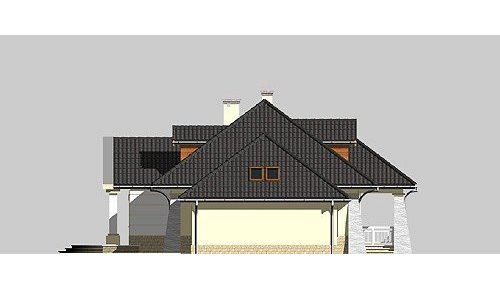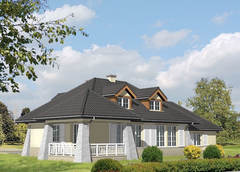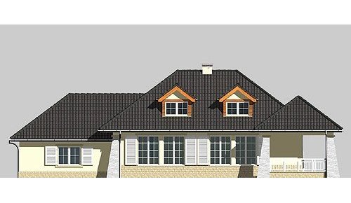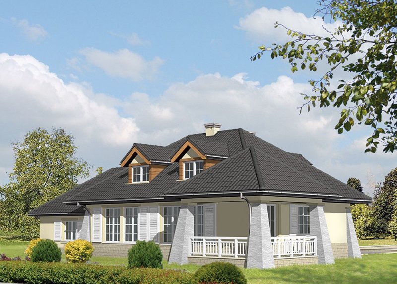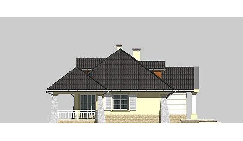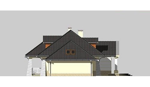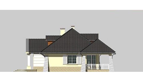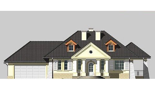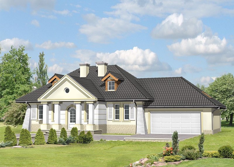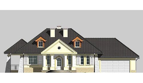 Dom jednorodzinny, parterowy, z poddaszem użytkowym oraz dwustanowiskowym garażem.