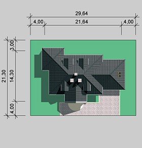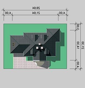 - Min. wymiary działki 29.64x21.30 m