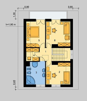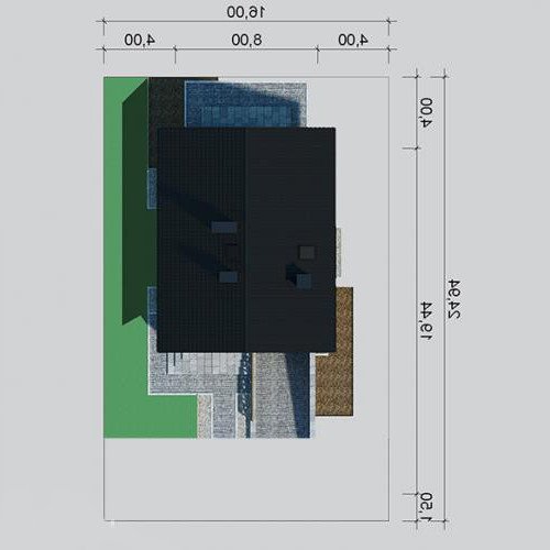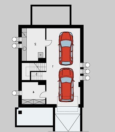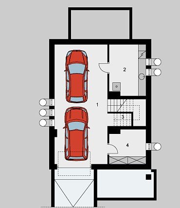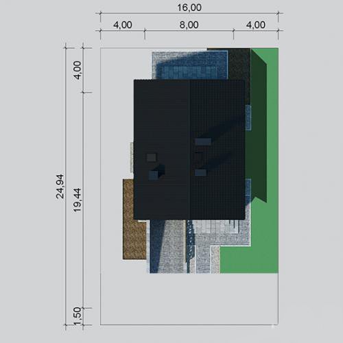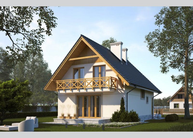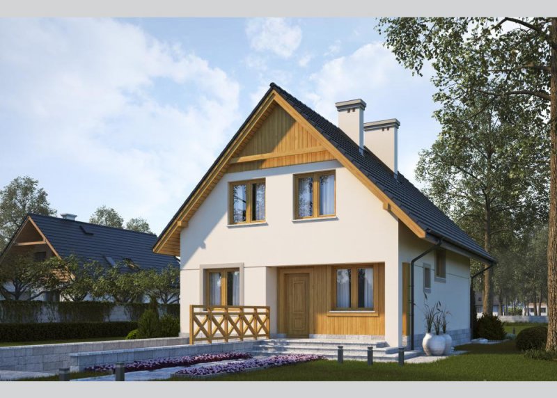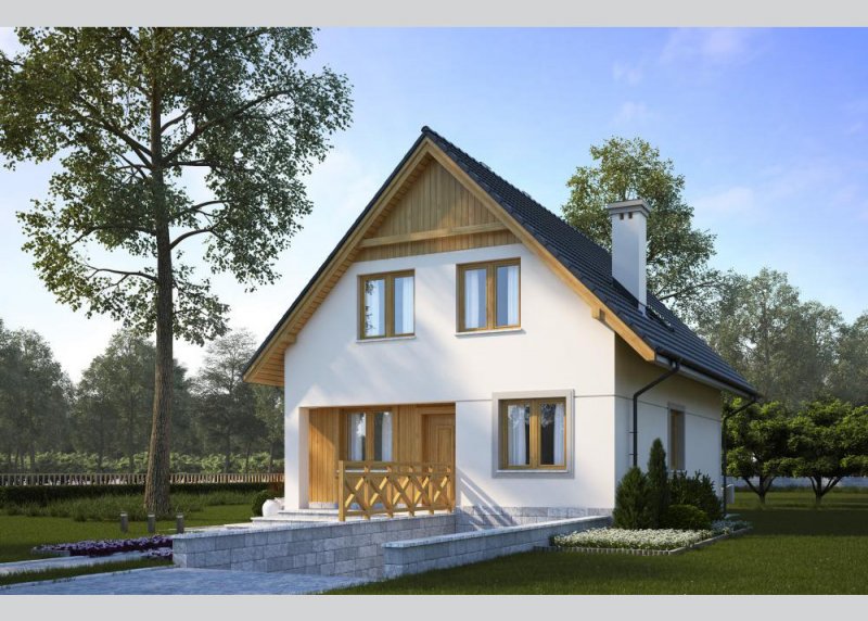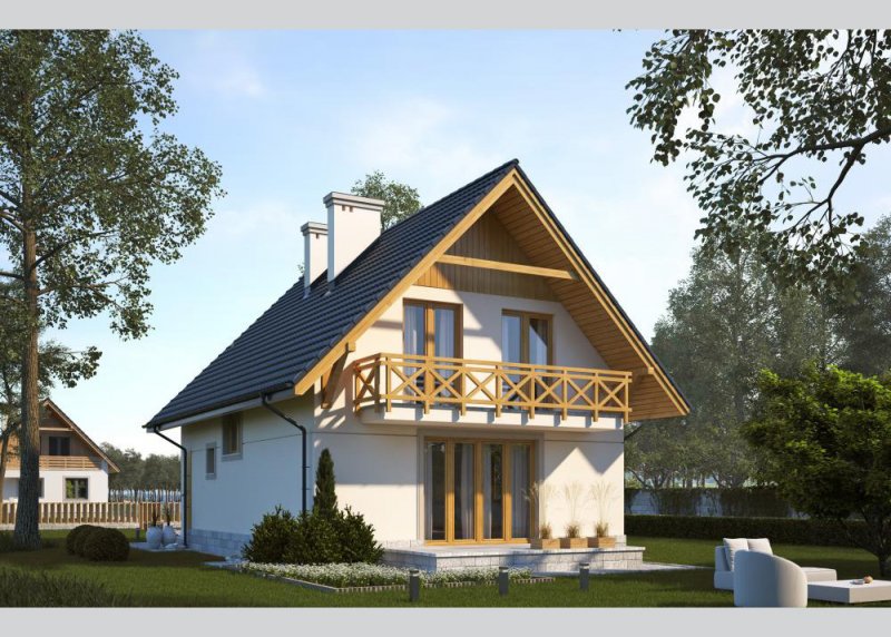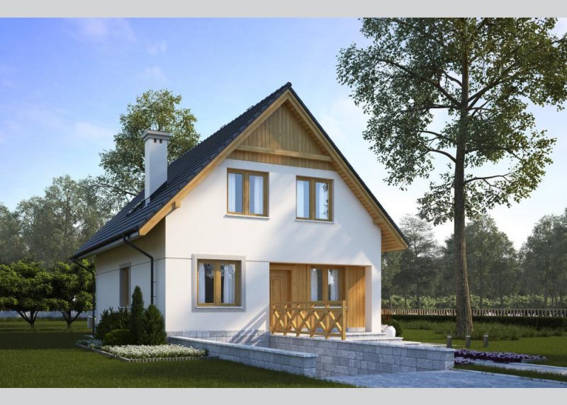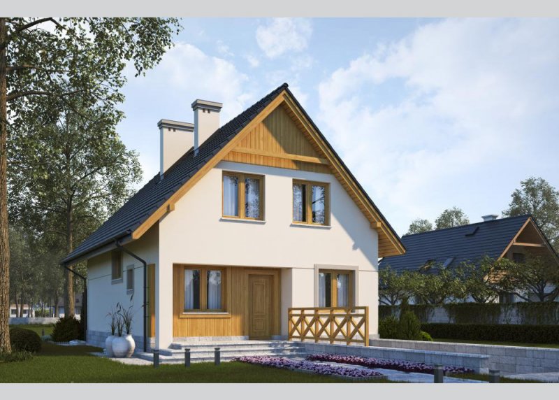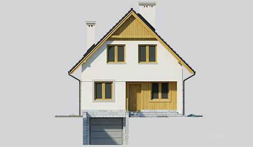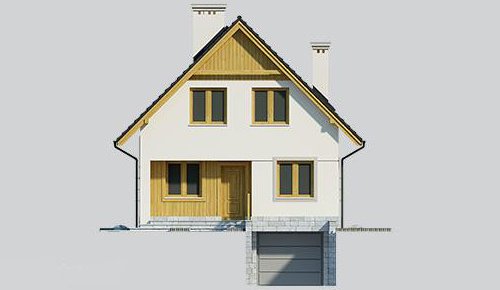 Dom jednorodzinny, parterowy, z poddaszem użytkowym oraz dwustanowiskowym garażem zlokalizowanym w podpiwniczeniu.