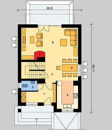 - Elewacje: wykończone tynkiem silikonowo-żywicowym, cokoły otynkowane