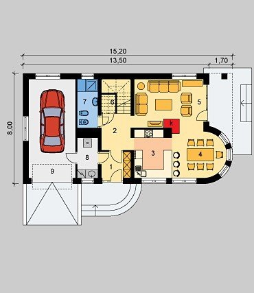 - Pokrycie dachu: dachówką ceramiczną
