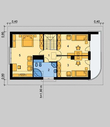 - Kąt nachylenia dachu 45.00°