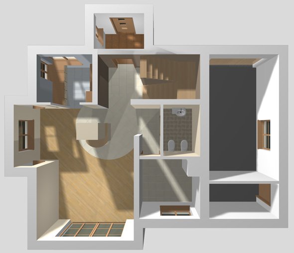 - Okna i drzwi balkonowe: drewniane, okna połaciowe firmy Velux