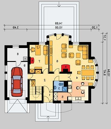 - Pokrycie dachu: dachówką ceramiczną