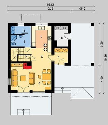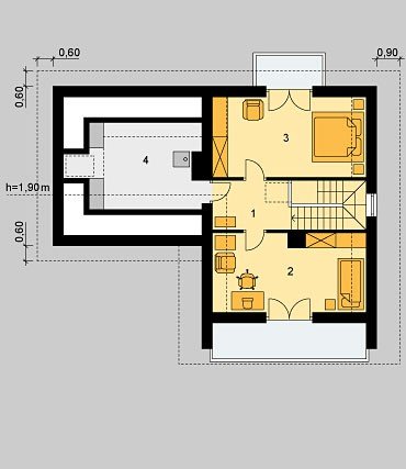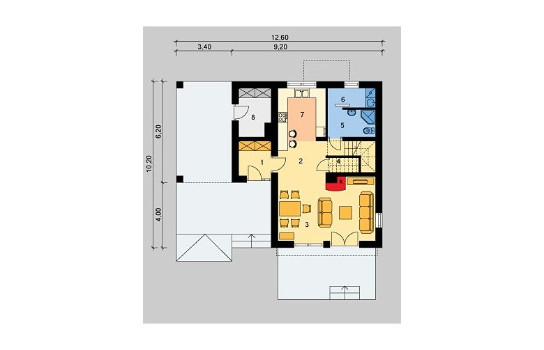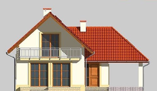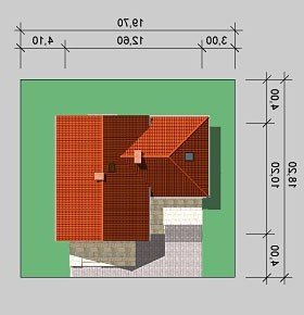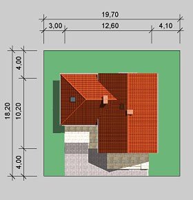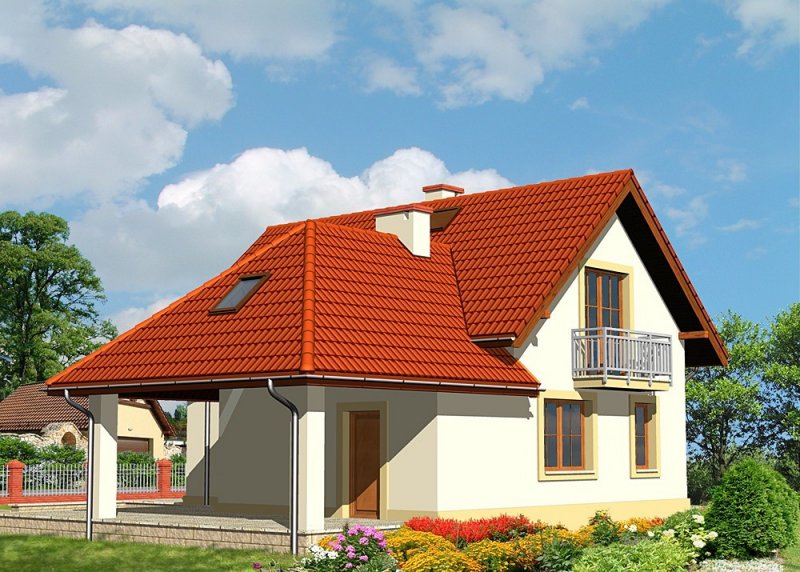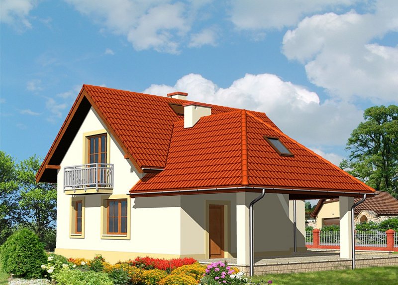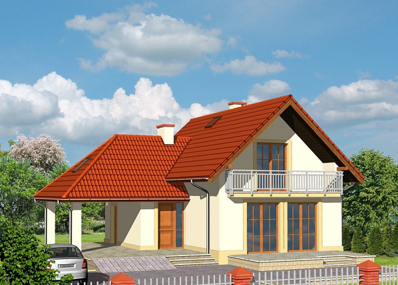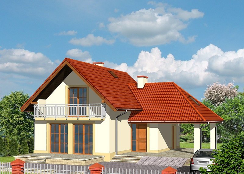 Dom jednorodzinny, parterowy, z poddaszem użytkowym oraz wiatą garażową.