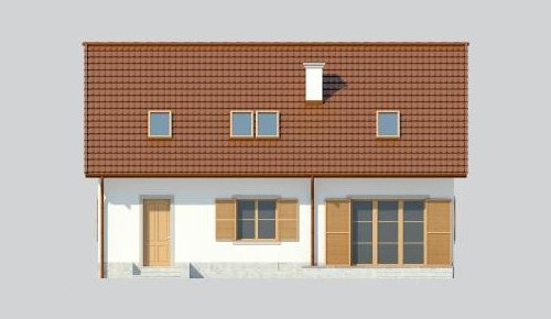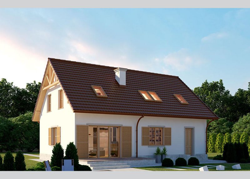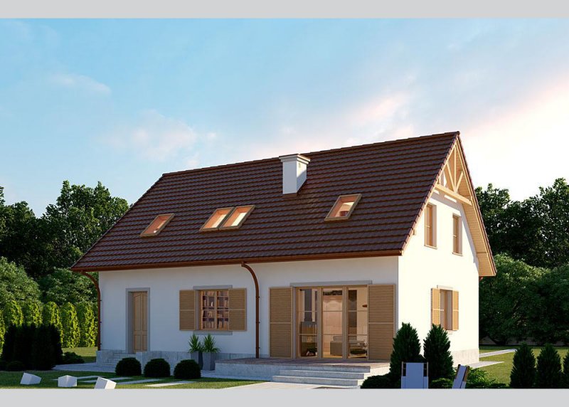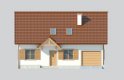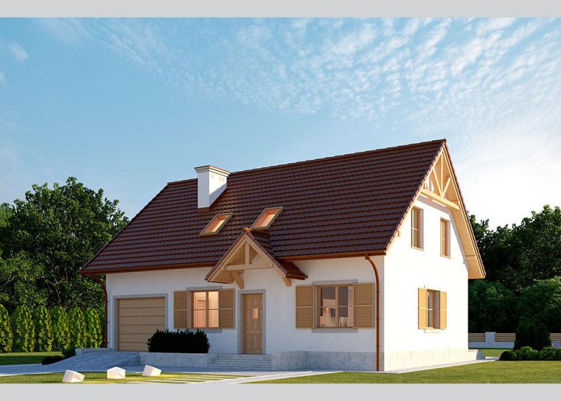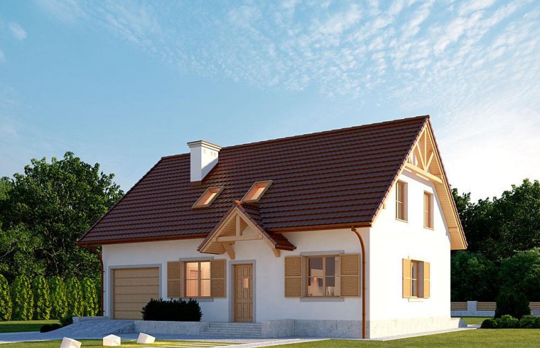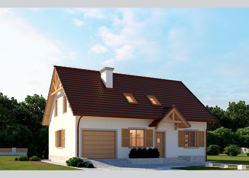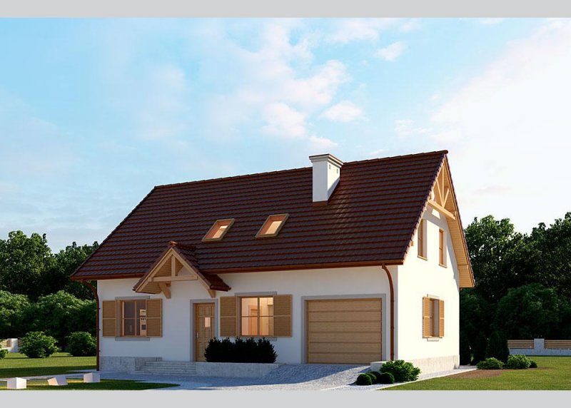 Dom jednorodzinny, parterowy, z poddaszem użytkowym i jednostanowiskowym garażem.