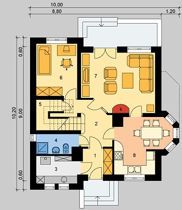 8. Kuchnia z jadalnią 12.35m