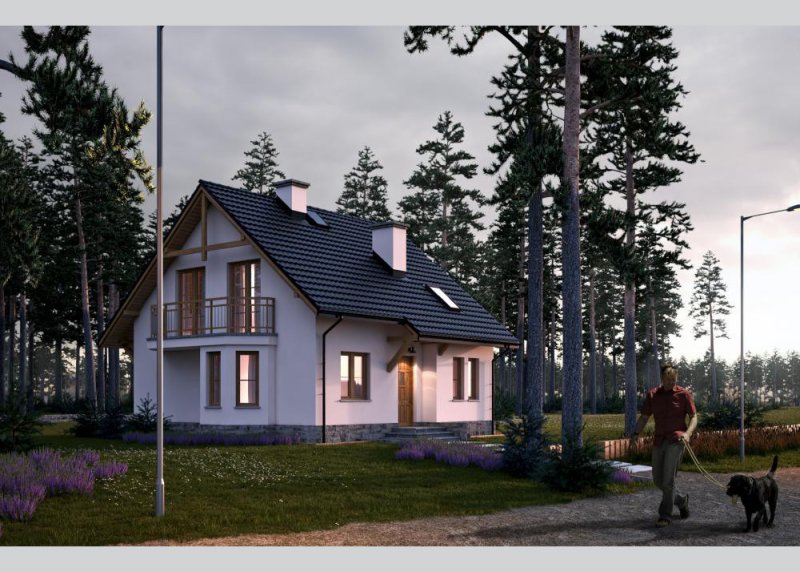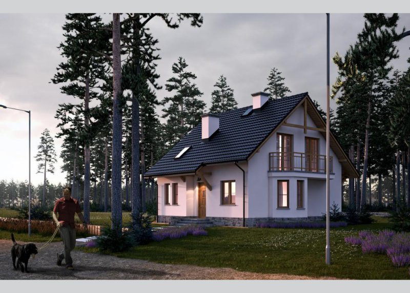 Dom jednorodzinny, parterowy, z poddaszem użytkowym, o bardzo funkcjonalnie zaplanowanej przestrzeni - doskonały dla cztero-, piecioosobowej rodziny.