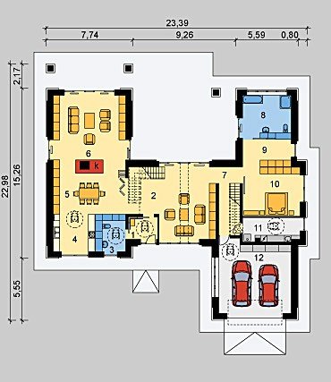 - Pokrycie dachu: dachówką ceramiczną