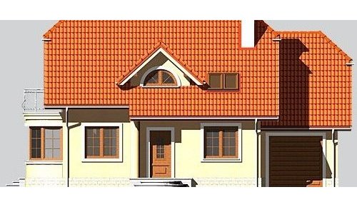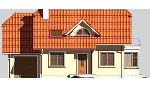 Dom jednorodzinny, parterowy, z poddaszem użytkowym i jednostanowiskowym garażem.