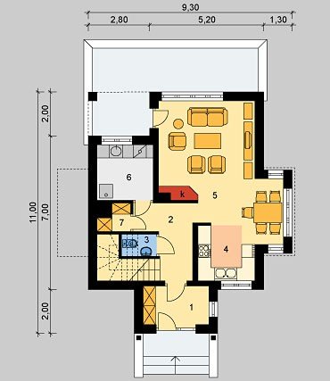 - Elewacje: wykończone tynkiem silikonowym, cokół obłożony płytkami klinkierowymi