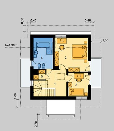 Dom jednorodzinny, parterowy, z poddaszem użytkowym.
