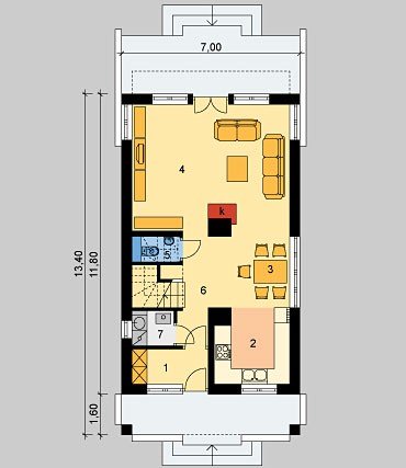 Dom jednorodzinny, parterowy, z poddaszem użytkowym.