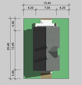 - Min. wymiary działki 15.40x20.40 m