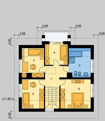 Dom jednorodzinny, parterowy, niepodpiwniczony, z poddaszem użytkowym.