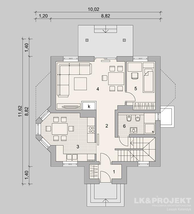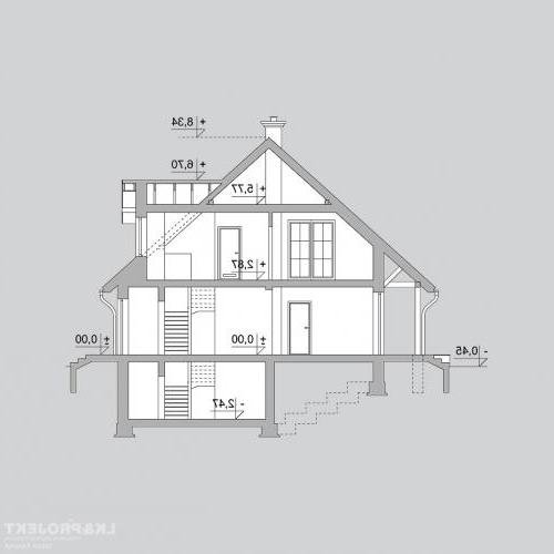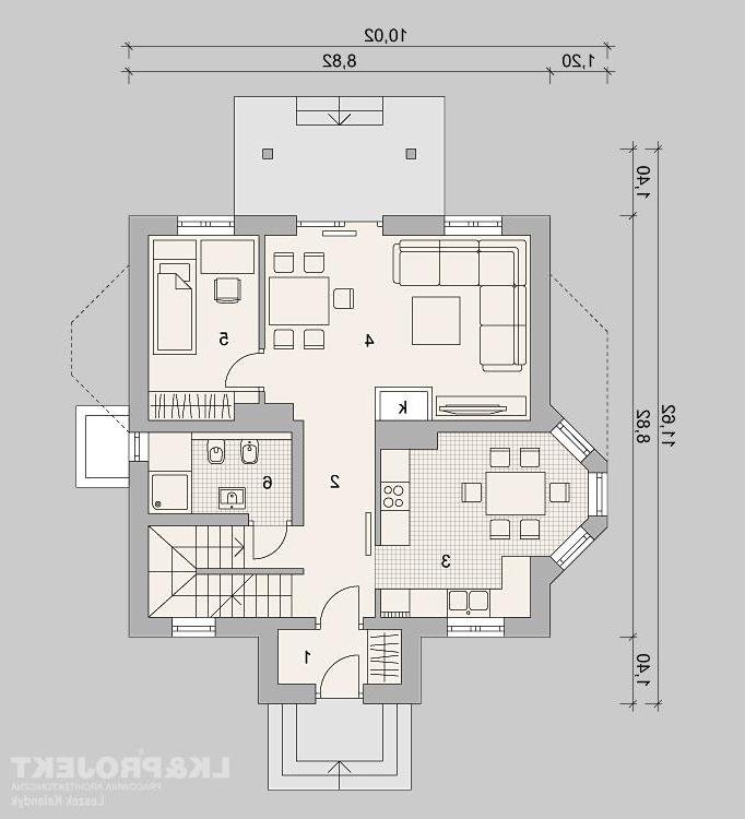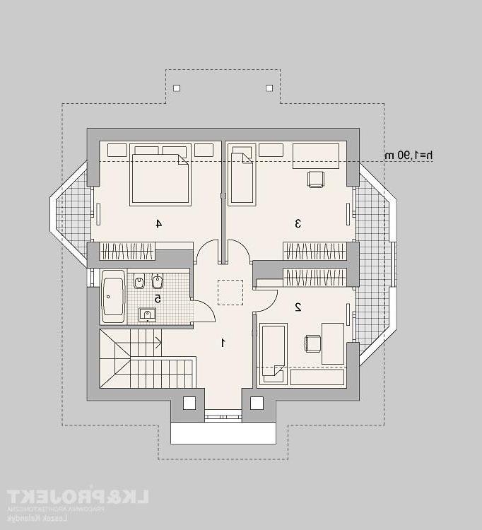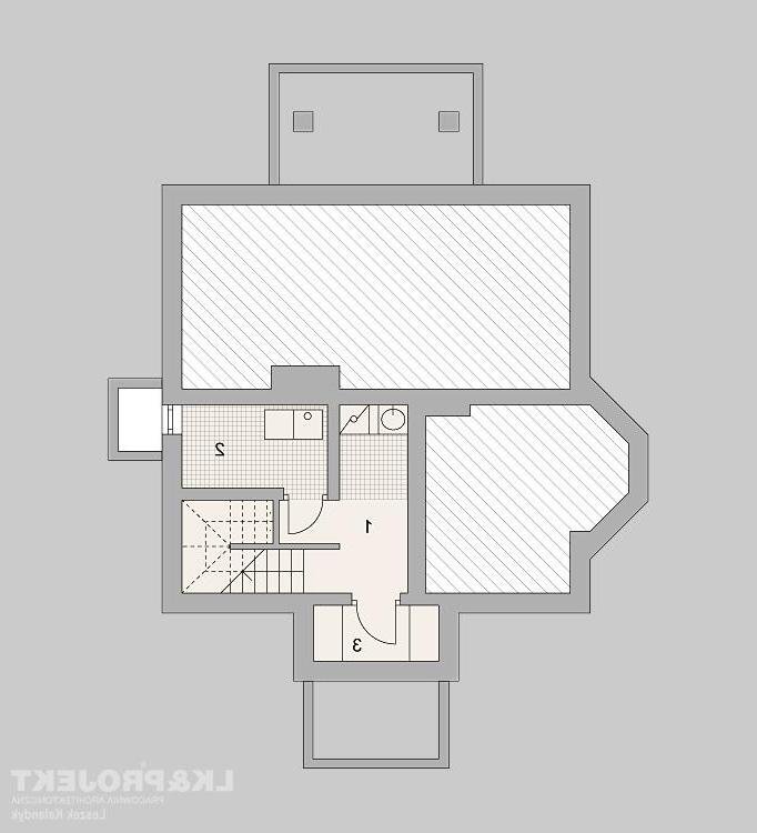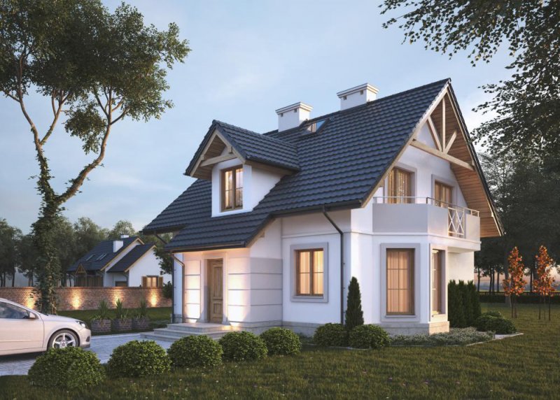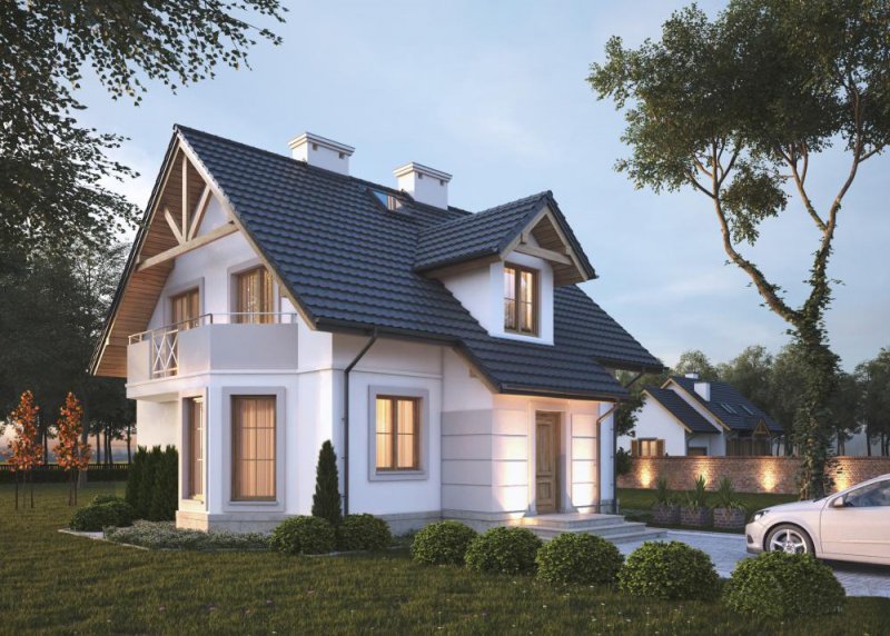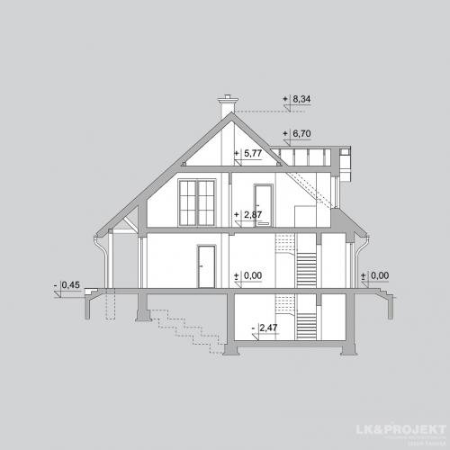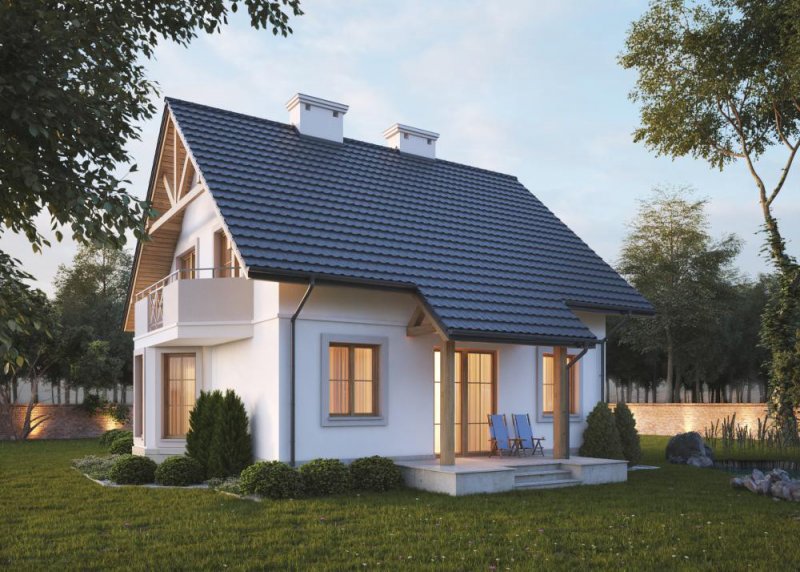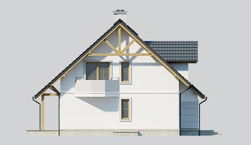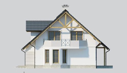 Projekt tradycyjnego domu jednorodzinnego, parterowego z poddaszem użytkowym i piwnicą, idealny dla rodziny cztero - lub pięcioosobowej. Na 108 m2 zaplanowana została bardzo funkcjonalna przestrzeń. Na parterze znajdują się: kuchnia połączona z jadalnią, przestronny pokój dzienny, łazienka oraz sypialnia, która może również pełnić rolę pokoju gościnnego lub gabinetu. Na piętrze znajduje się strefa sypialna, na którą składają się 3 pokoje - każdy z wyjściem na balkon oraz łazienka. W piwnicy zaprojektowano pralnię, kotłownię oraz pomieszczenie gospodarcze.