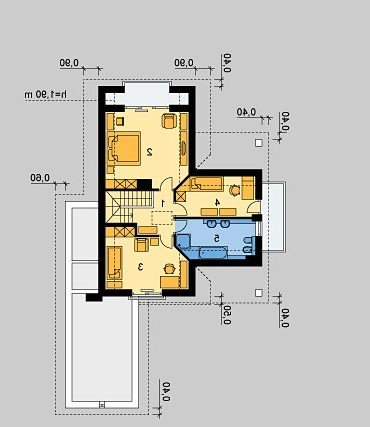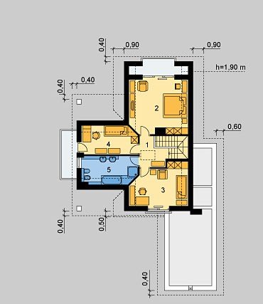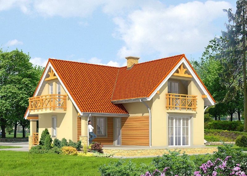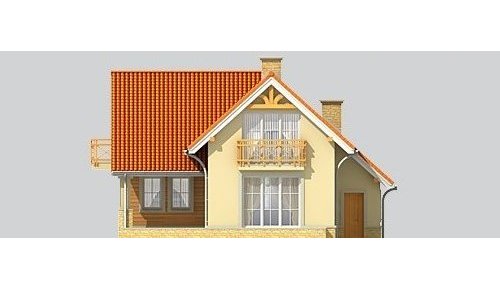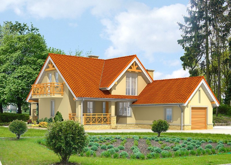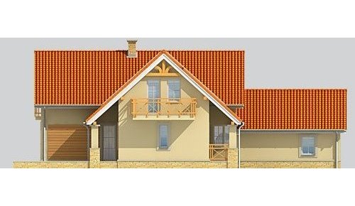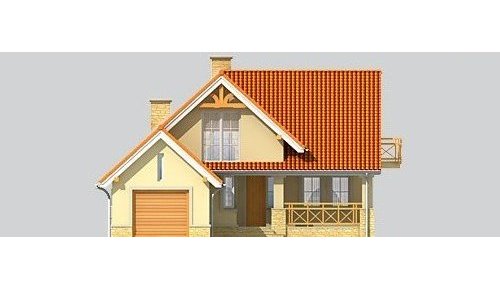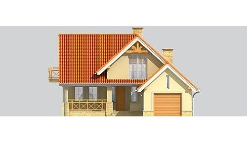 Dom jednorodzinny, niepodpiwniczony, z poddaszem użytkowym i jednostanowiskowym garażem.