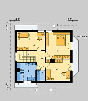 Dom jednorodzinny, parterowy, z poddaszem użytkowym.