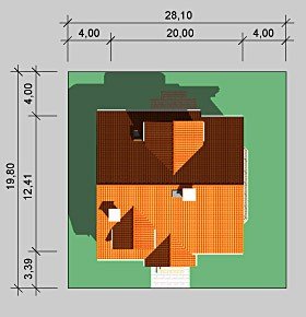 - Min. wymiary działki 28.10x19.80 m