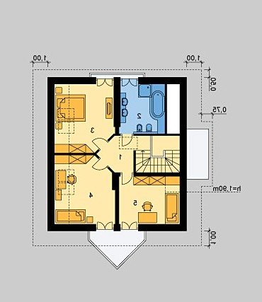 - Kąt nachylenia dachu 45.00°