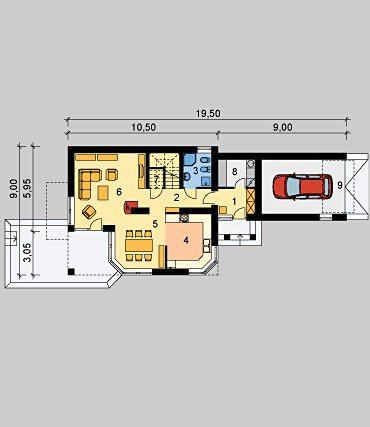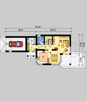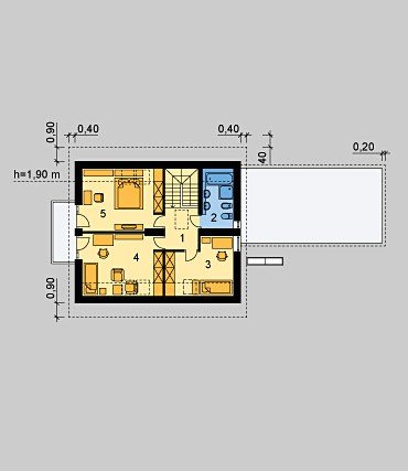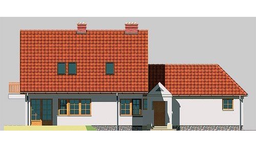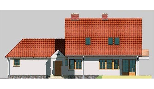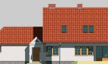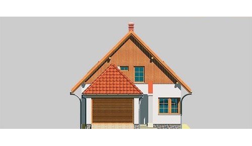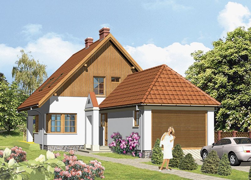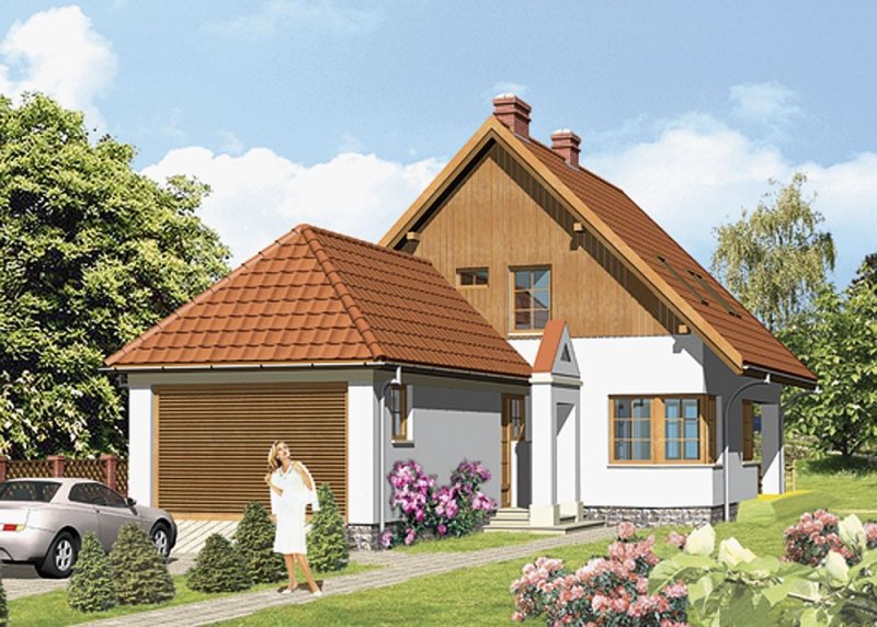 Dom jednorodzinny, parterowy, z poddaszem użytkowym i jednostanowiskowym garażem.