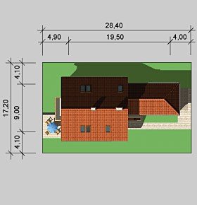 - Elewacje: wykończone tynkiem drobnoziarnistym, cokoły obłożone ceramicznymi