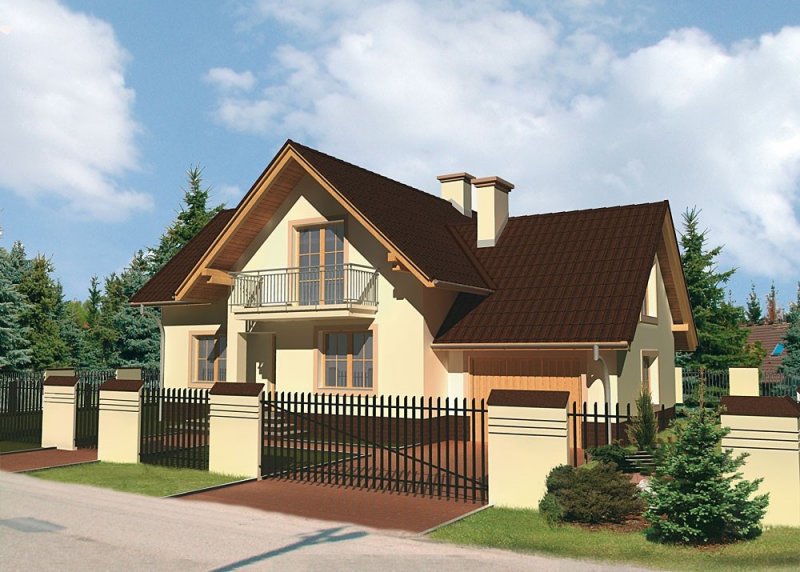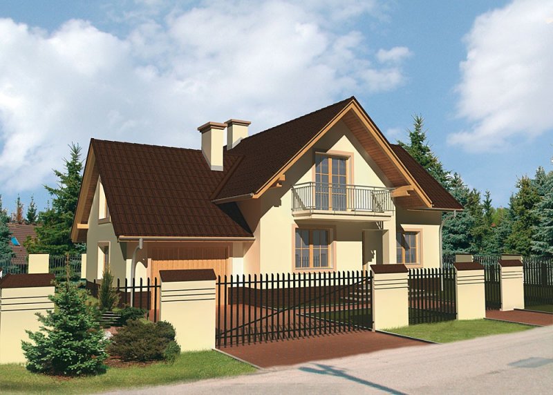 Dom jednorodzinny, parterowy, z poddaszem użytkowym i jednostanowiskowym garażem.