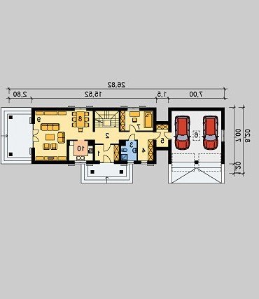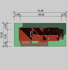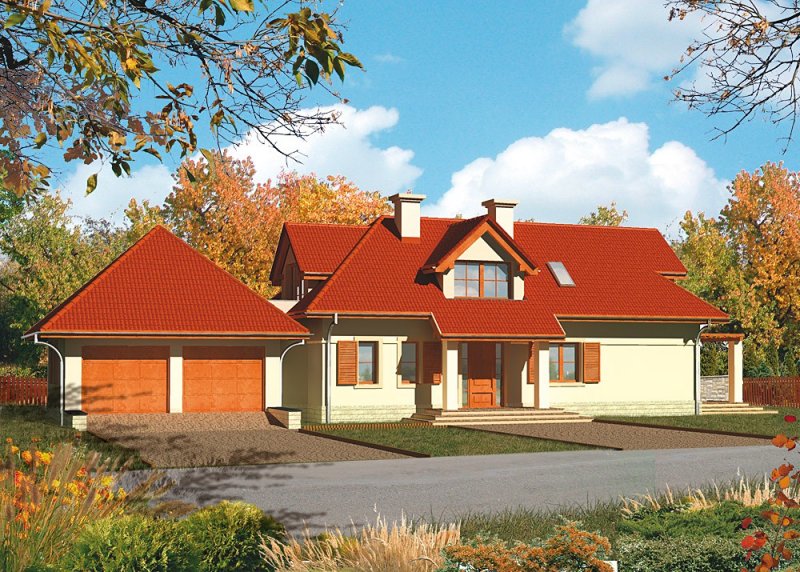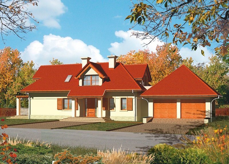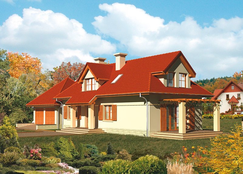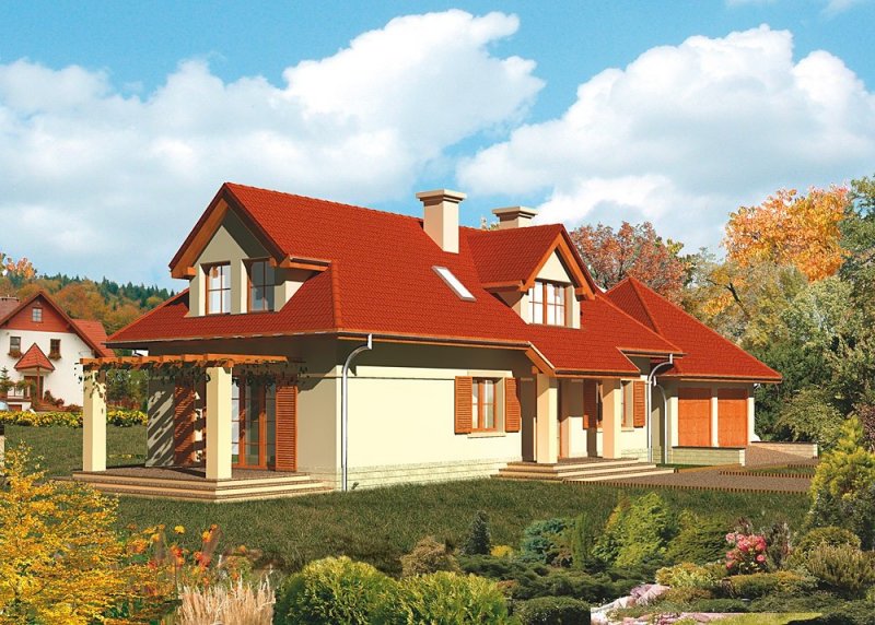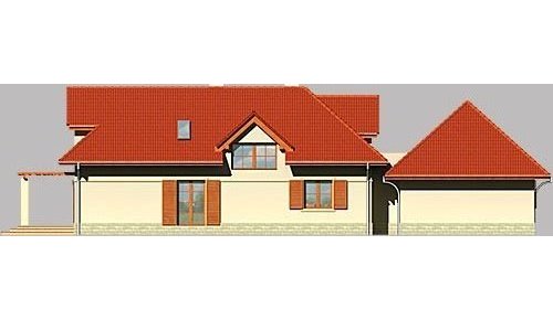 Dom jednorodzinny, parterowy, częściowo podpiwniczony z poddaszem użytkowym oraz garażem dwustanowiskowym połączonym przewiązką z budynkiem mieszkalnym.