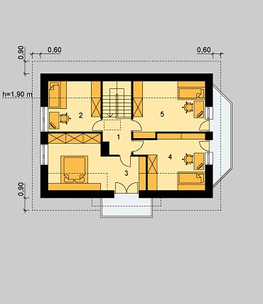 Dom jednorodzinny, parterowy, z poddaszem użytkowym.