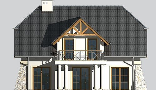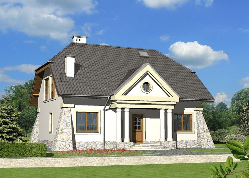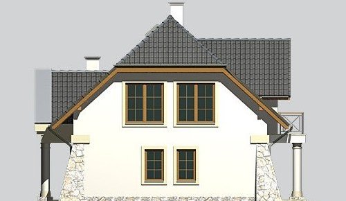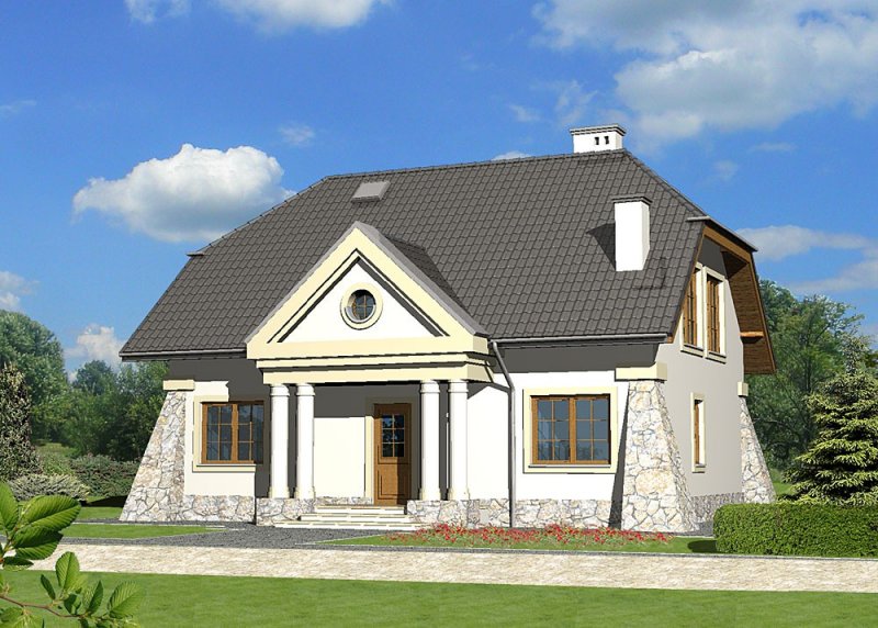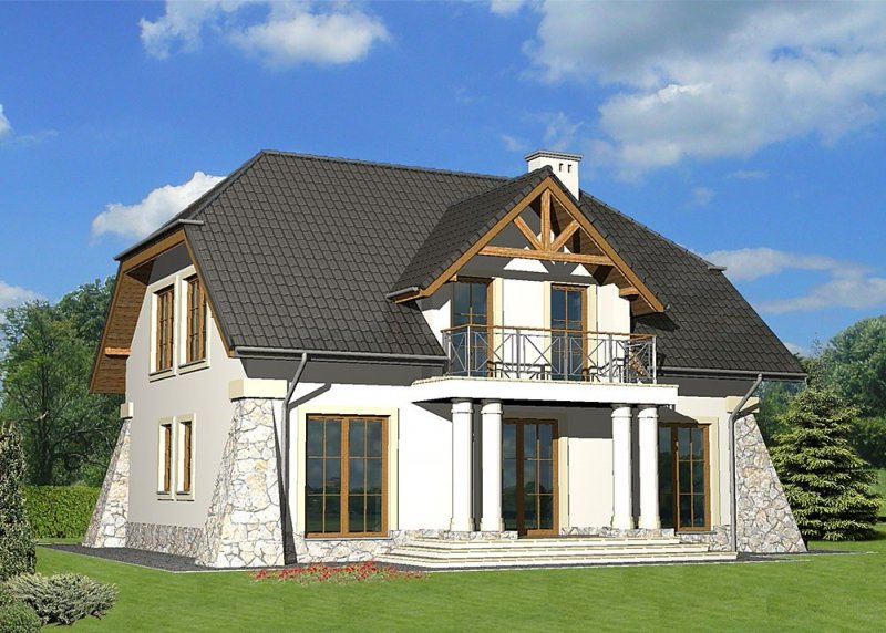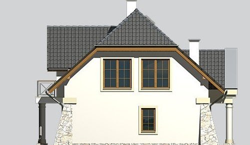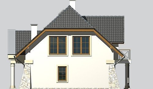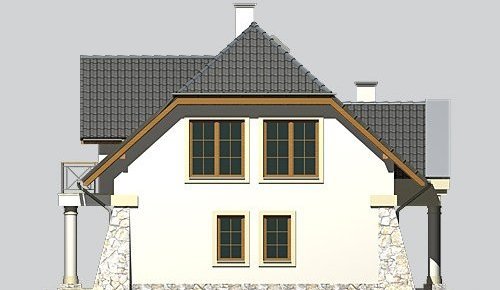 - Elewacje: wykończone tynkiem silikonowym, cokół obłożony płytkami kamiennymi