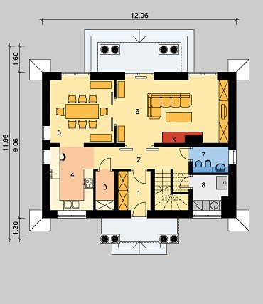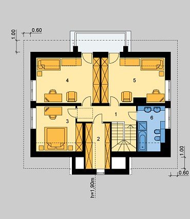 Dom jednorodzinny, parterowy z poddaszem użytkowym.