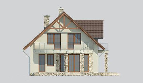 - Elewacje: wykończone tynkiem silikonowym, cokoły, wykusz oraz słupy wykończone kamieniem naturalnym