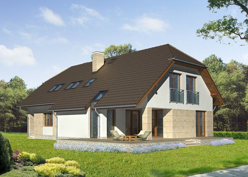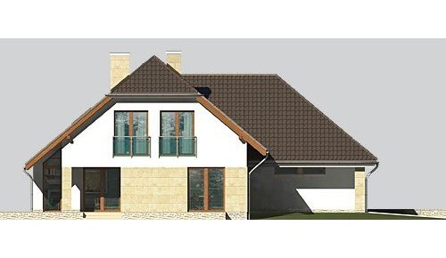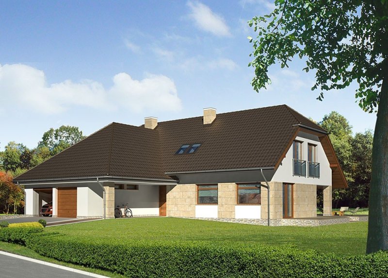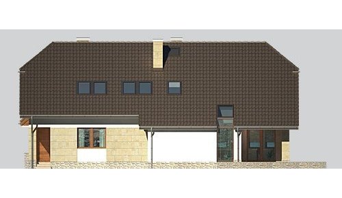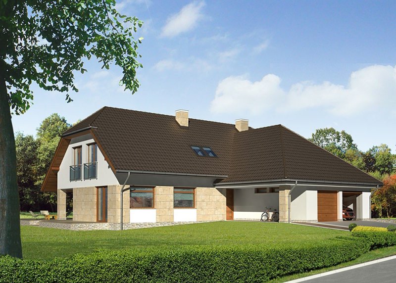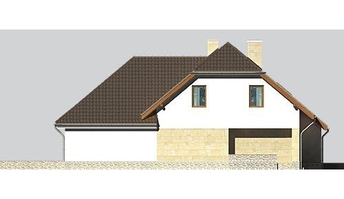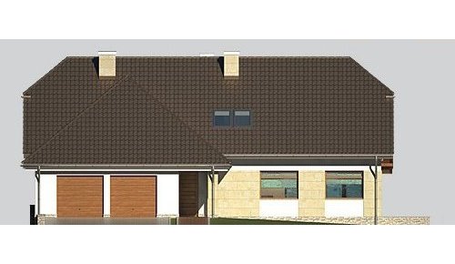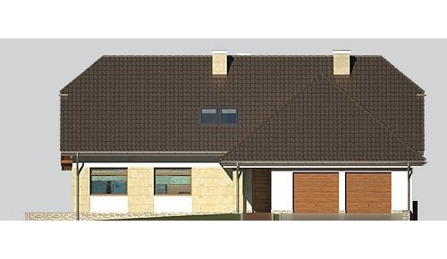 Dom jednorodzinny, parterowy, z poddaszem użytkowym i dwustanowiskowym garażem.