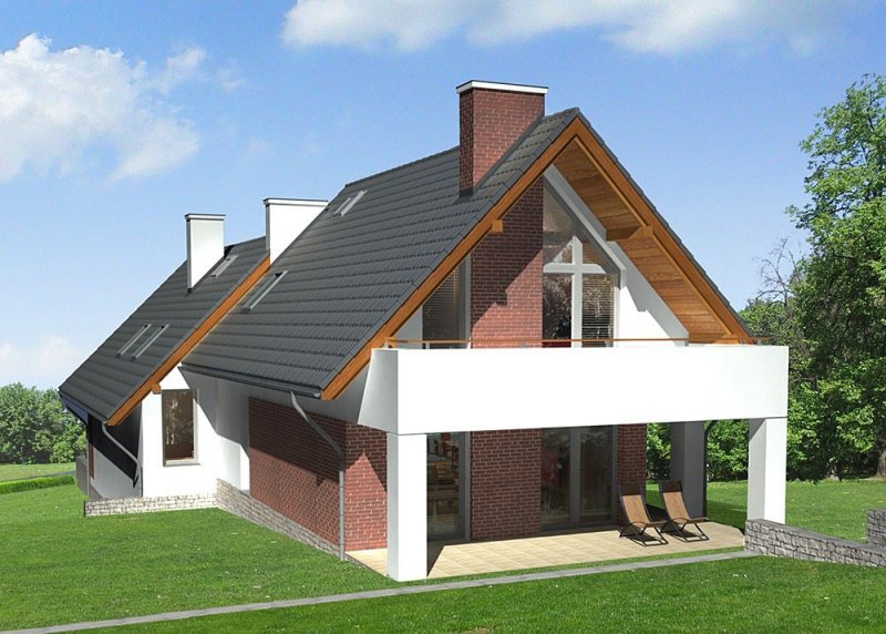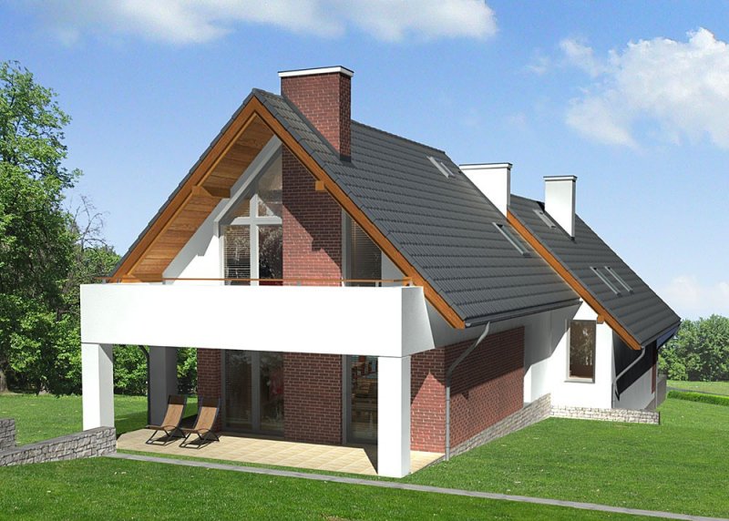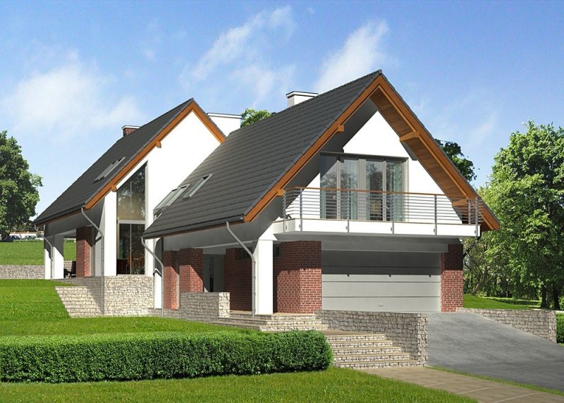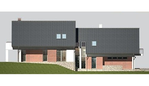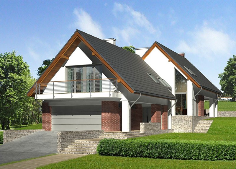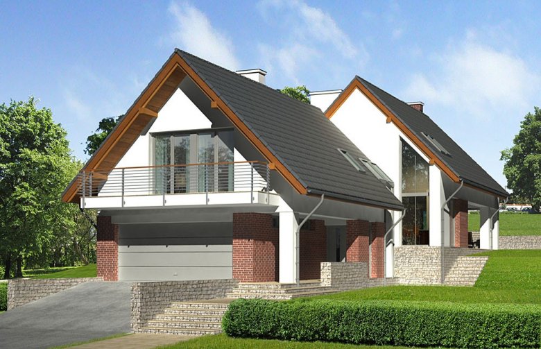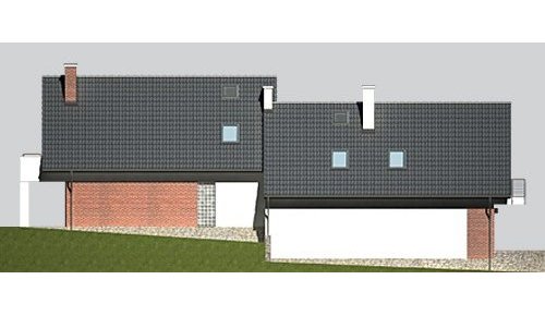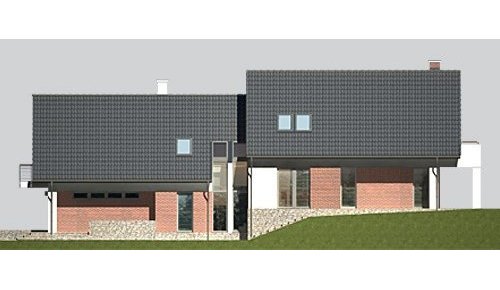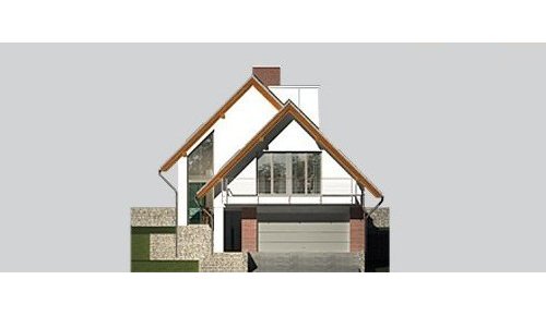 Dom jednorodzinny, parterowy, z poddaszem użytkowym i dwustanowiskowym garażem.