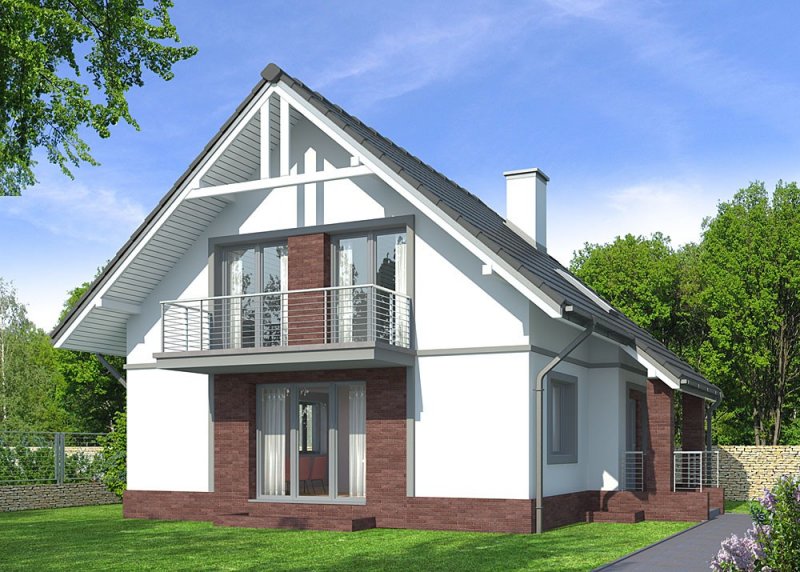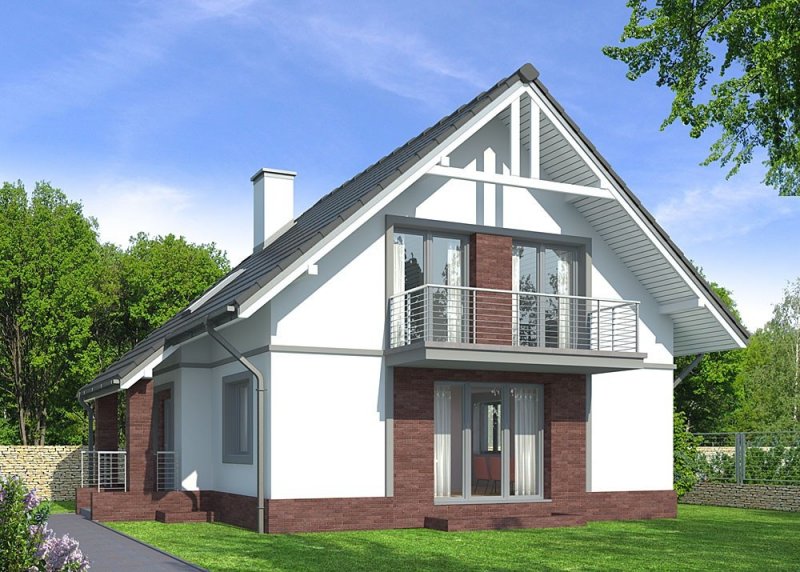 - Elewacje: wykończone tynkiem silikonowym, cokół pokryty płytkami klinkierowymi