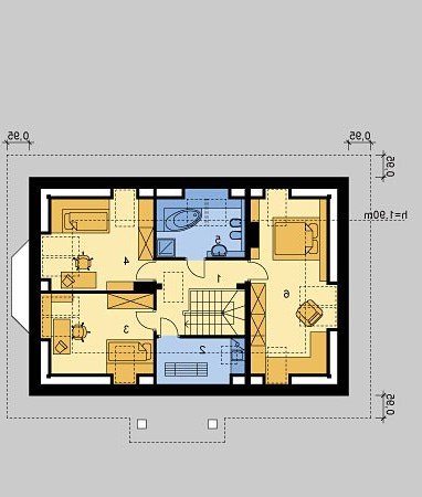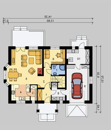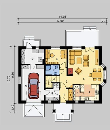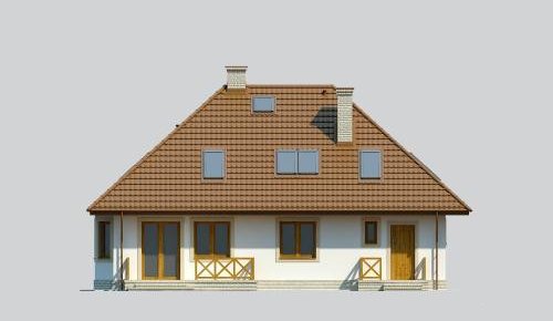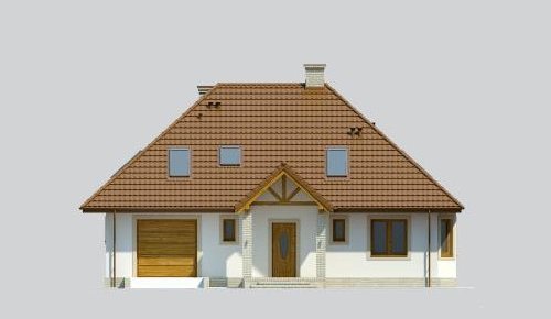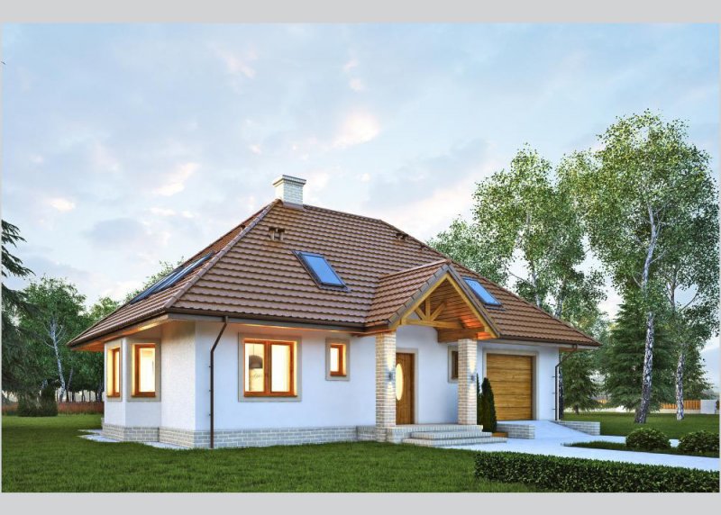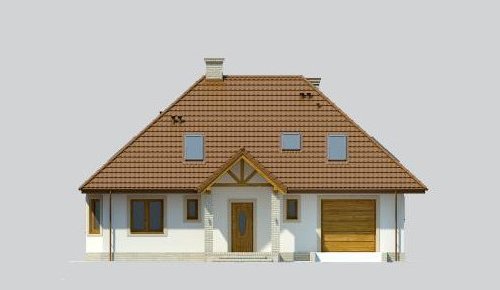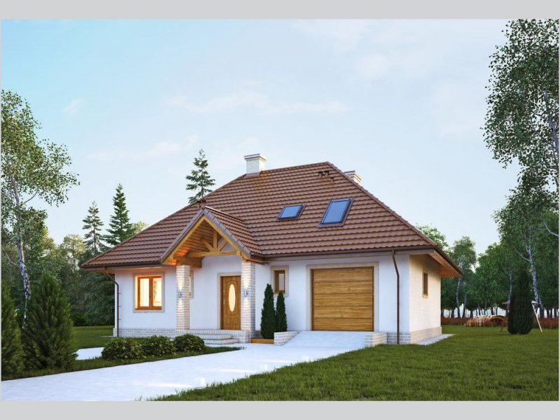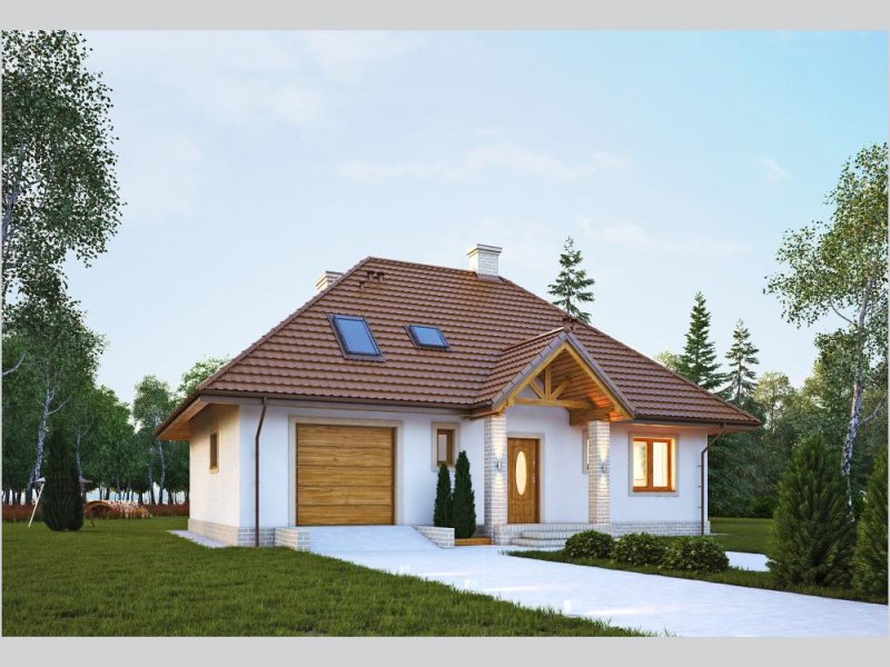 Dom jednorodzinny, parterowy, z poddaszem użytkowym i jednostanowiskowym garażem.