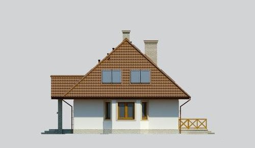 - Elewacje: wykończone tynkiem silikonowym na siatce z włókna szklanego, płytki klinkierowe w kolorze ceglastym na cokole