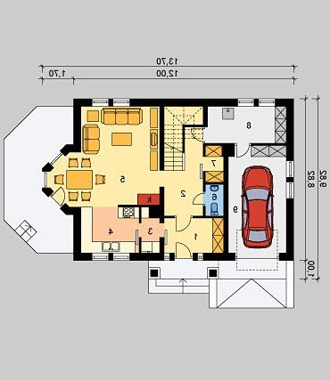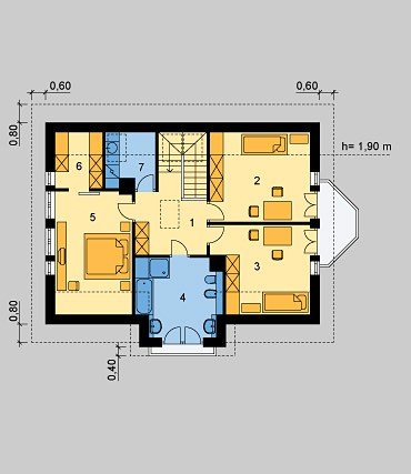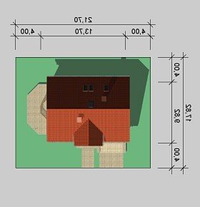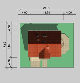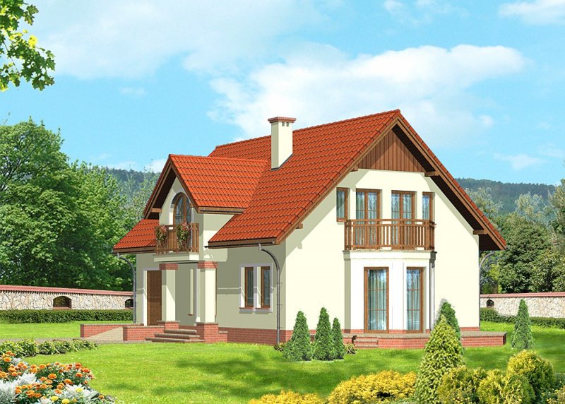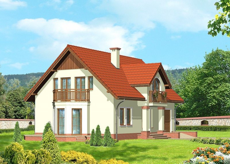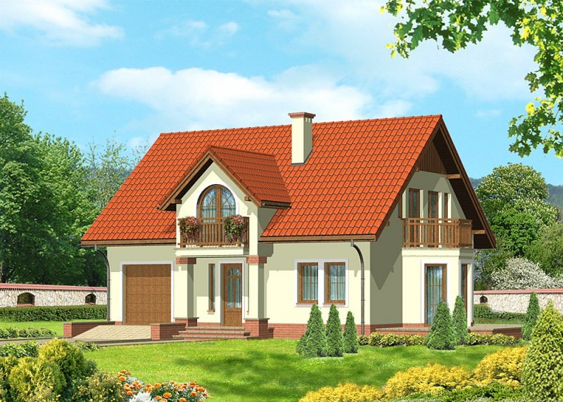 Dom jednorodzinny, parterowy, z poddaszem użytkowym i jednostanowiskowym garażem.