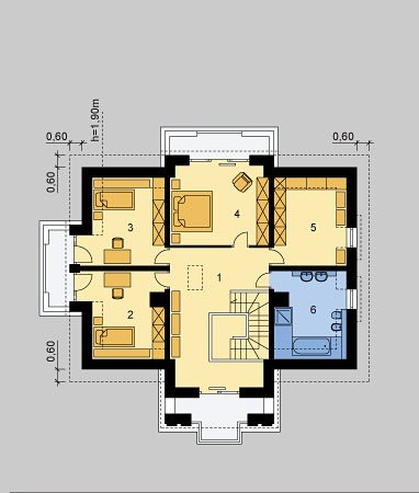 Dom jednorodzinny, parterowy z poddaszem użytkowym.