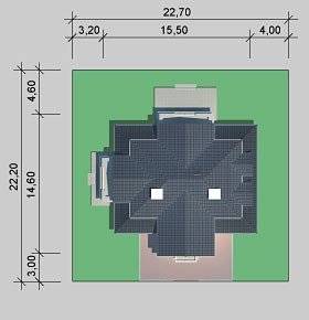- Min. wymiary działki 22.70x22.20 m