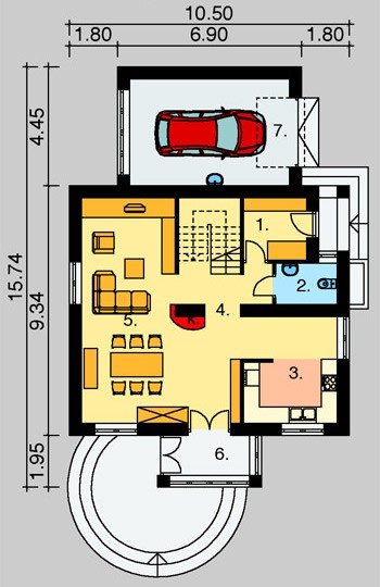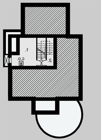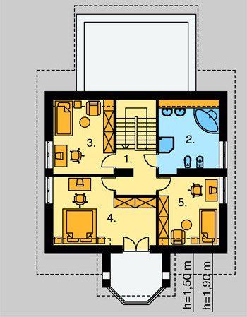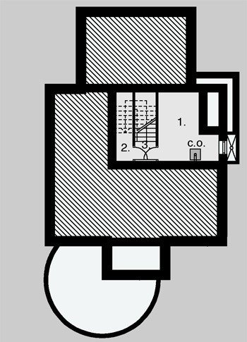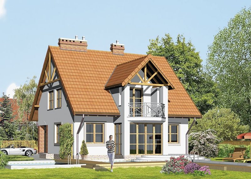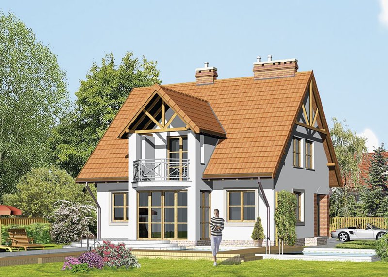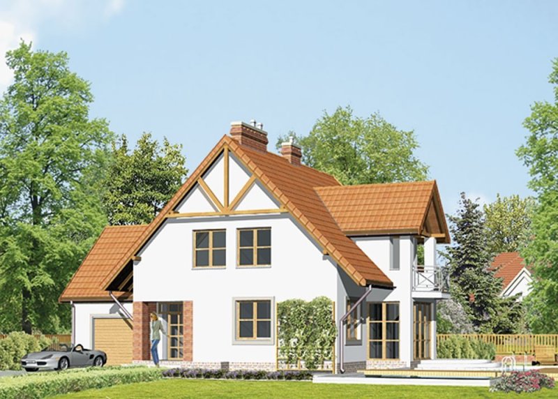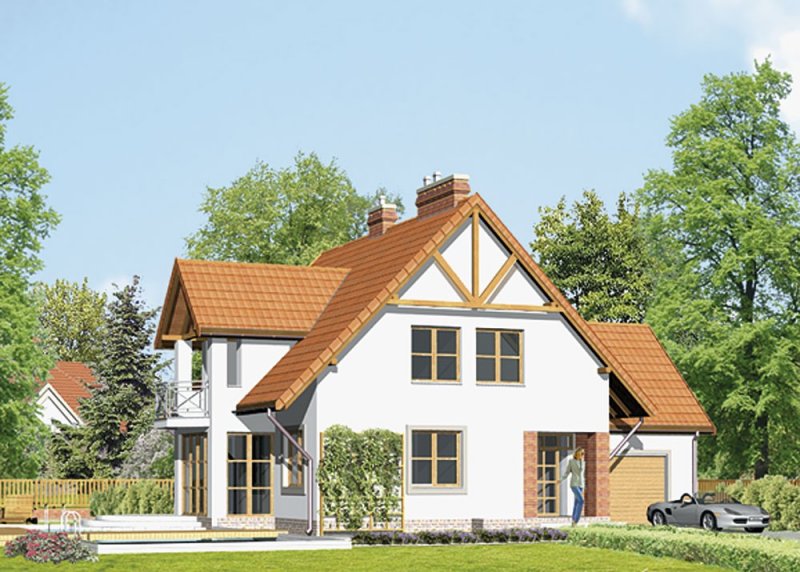 Dom jednorodzinny, parterowy, z poddaszem użytkowym, częściowo podpiwniczony, z jednostanowiskowym garażem.