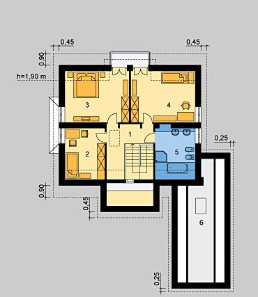 - Kąt nachylenia dachu 45.00°
