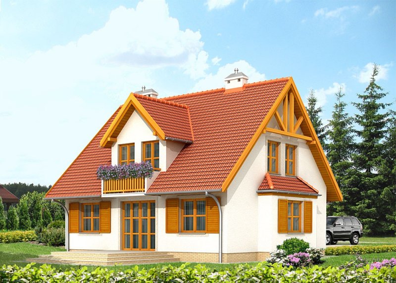 - Pokrycie dachu: dachówką ceramiczną
