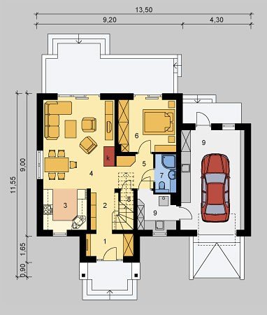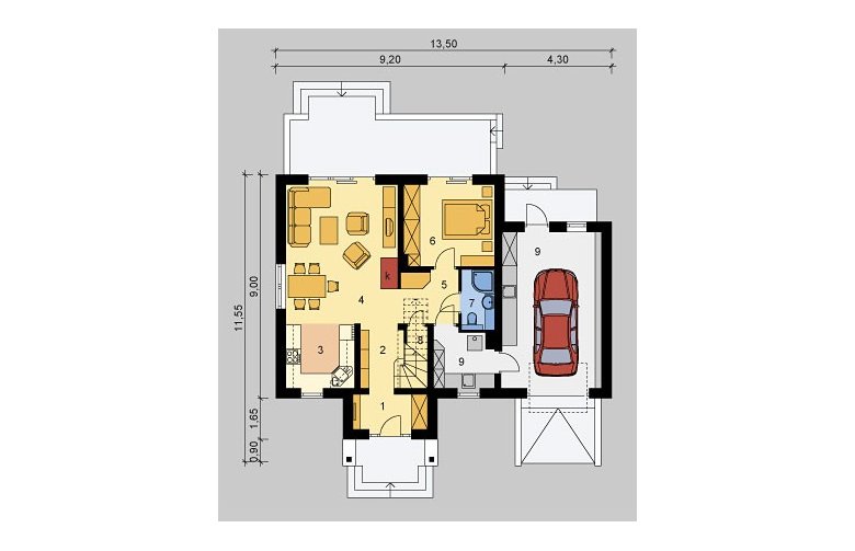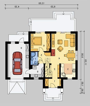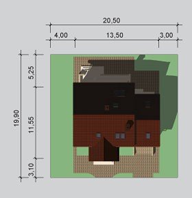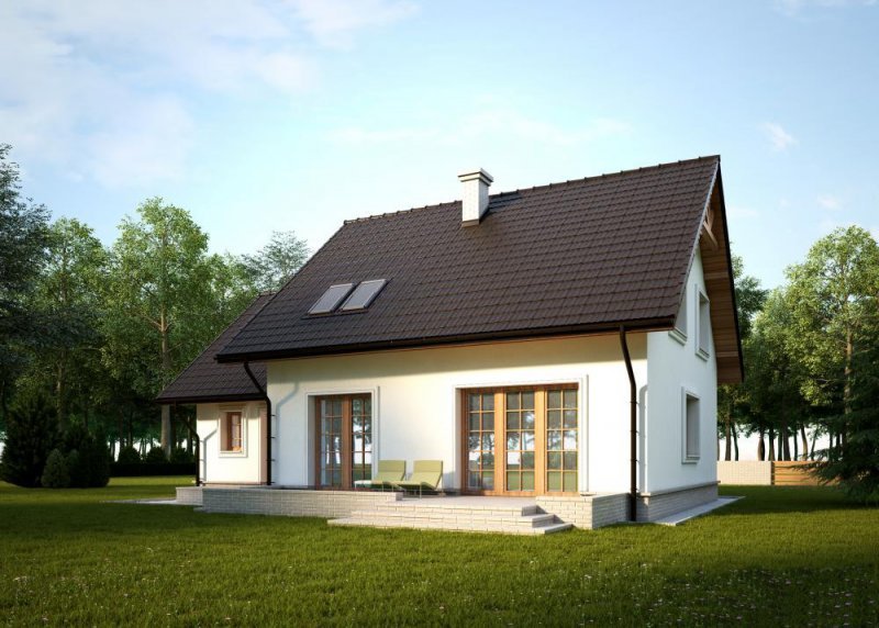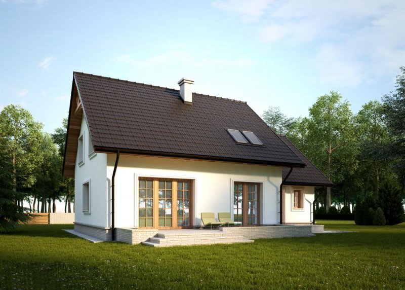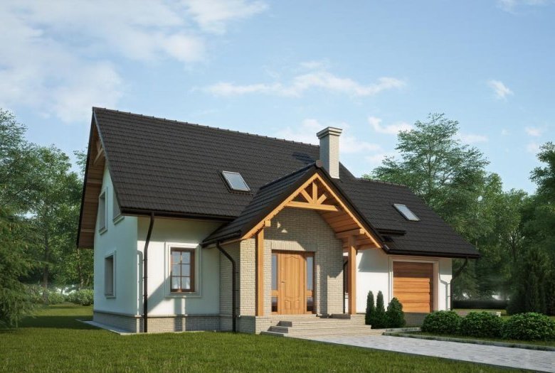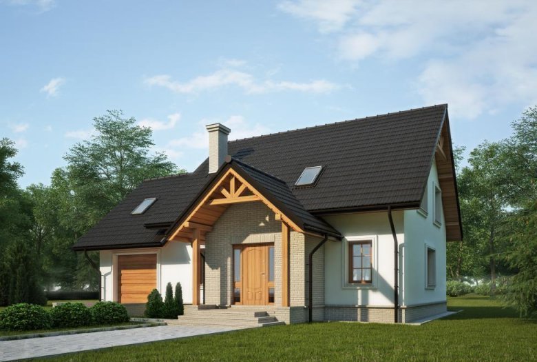 Dom jednorodzinny z poddaszem użytkowym i jednostanowiskowym garażem.