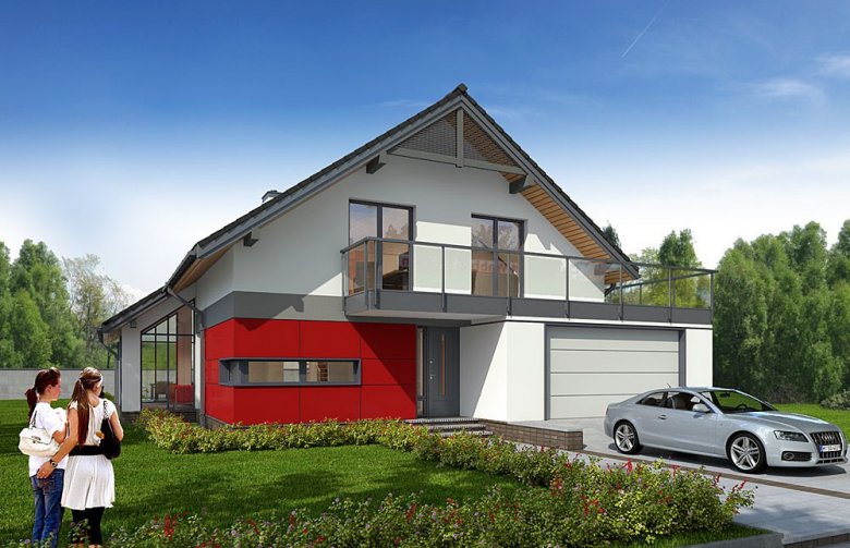 Projekt nowoczesnego domu z garażem, poddaszem użytkowym i antresolą