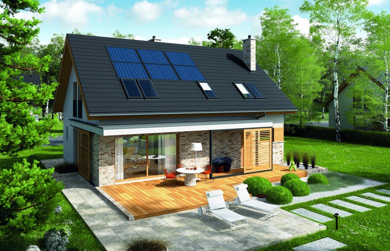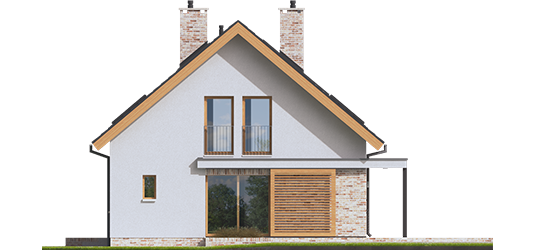 Logan to praktyczny i przestronny dom jednorodzinny, który emanuje świeżością oraz modną elegancją. Dzięki swojej prostej konstrukcji projekt jest szybki i tani w budowie, a przy tym bardzo ciepły i funkcjonalny. Na szczególną uwagę zasługuje rodzinny salon połączony z jadalnią oraz osobny gabinet, który może pełnić rolę dodatkowej sypialni na parterze. Fasada od strony ogrodu została wyposażona w szerokie, przesuwne drzwi tarasowe, dzięki którym w pogodne dni, można rozsunąć skrzydła i cieszyć się poczuciem otwartej i niczym nieskrępowanej przestrzeni. Efekt maksymalnego doświetlenia i stały kontakt z przyrodą to ogromne atuty, które sprawiają, że codzienne użytkowanie domu jest komfortowe i niezwykle przyjemne.