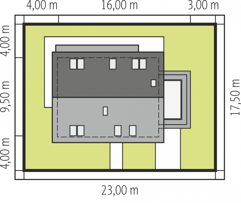 - Min. wymiary działki 23.00x17.50 m
