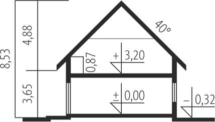 - Kąt nachylenia dachu 40.00°