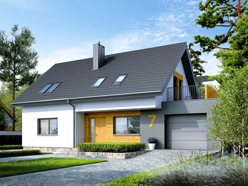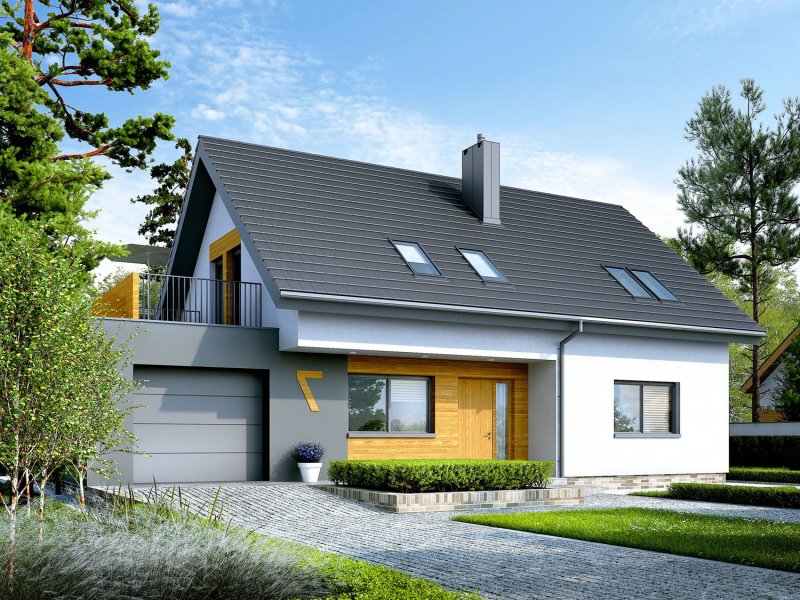 Charakterystyka: Dom parterowy z poddaszem użytkowym, niepodpiwniczony, z garażem jednostanowiskowym