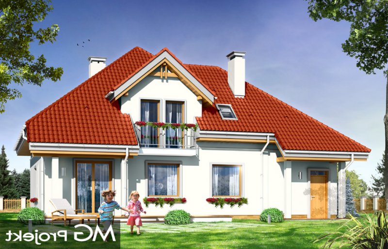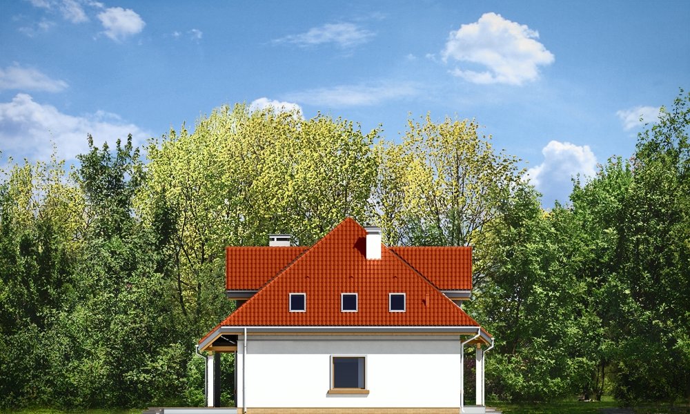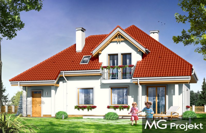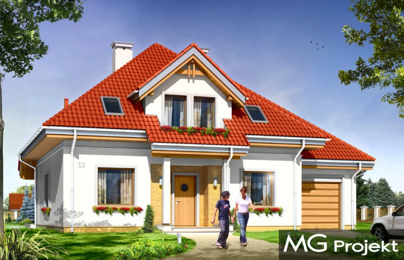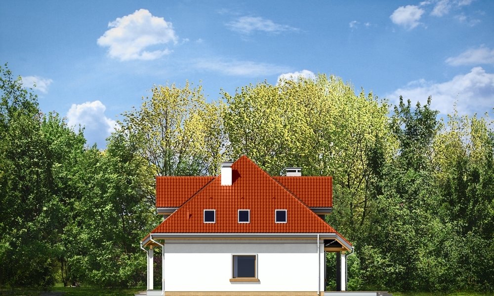 Luka to śliczny domek jednorodzinny dla cztero-sześcioosobowej rodziny, parterowy z poddaszem użytkowym, przekryty kopertowym dachem, z dobudowanym garażem. Bryła została oparta na planie kwadratu, do którego dołączono część garażową. Kopertowy dach urozmaicają lukarny – frontowa z zadaszeniem nad wejściem, wspartym na dwóch kolumnach, oraz ogrodowa z balkonikiem. Od strony ogrodu zaprojektowano dwa dodatkowe zadaszenia: nad częścią tarasu, przekrywające wyjście z salonu do ogrodu, oraz techniczne – przy wyjściu z pomieszczenia gospodarczego do ogrodu. Architektura domu to połączenie tradycji z nowoczesnością. Dom doskonale wpisze się w każde sąsiedztwo. Wnętrze podzielono na część dzienną i gospodarczą na parterze i pokoje sypialne na poddaszu. Salon połączony z holem i częściowo otwartą kuchnią ze spiżarką tworzą jednoprzestrzenne wnętrze dzienne . Na parterze zaprojektowano też dodatkowe dwa pokoje – wyjątek w tej wielkości domach. Pokoje mogę pełnić funkcję gabinetu czy sypialni gościnnej, ale mogą też być pokojem babci. Na dole przewidziano też garaż i sporą kotłownię. Na poddaszu znajdują się trzy sypialnie – dwie dziecięce o tej samej wielkości, ze wspólną łazienką, oraz wygodna sypialnia rodziców z widokiem na ogród, balkonem, garderobą i własną łazienką . Nad częścią garażową znajduje się strych, który można zaadaptować na dodatkowy pokój. Luka to propozycja dla osób lubiących bezpretensjonalną architekturę, nie silącą się na nowoczesność za wszelką ceną, a jednocześnie nie chcących typowego polskiego dworku. To bardzo praktyczny dom, z dużą ilością pokoi, z dużymi możliwościami aranżacji wnętrz, budynek o prostej konstrukcji, energooszczędny, niedrogi w budowie i późniejszej eksploatacji. Pracownia posiada wersję odbicia lustrzanego projektu.
